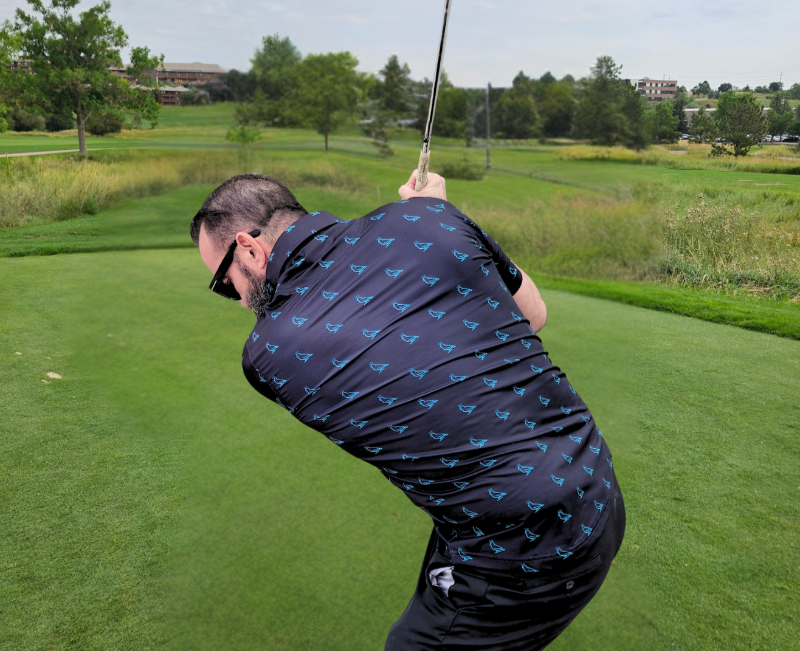 Introducing the stylish and versatile Turquoise Canary Polo. With its bold turquoise on black design, this OG canary polo is perfect for both a day on the course and a night out on the town. Elevate your wardrobe with this must-have addition.